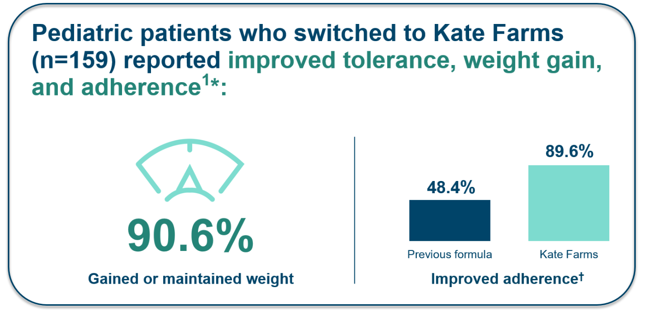* Formulas included in the study were Kate Farms Pediatric Standard 1.2, Standard 1.0, Pediatric Peptide 1.5, and Peptide 1.5.