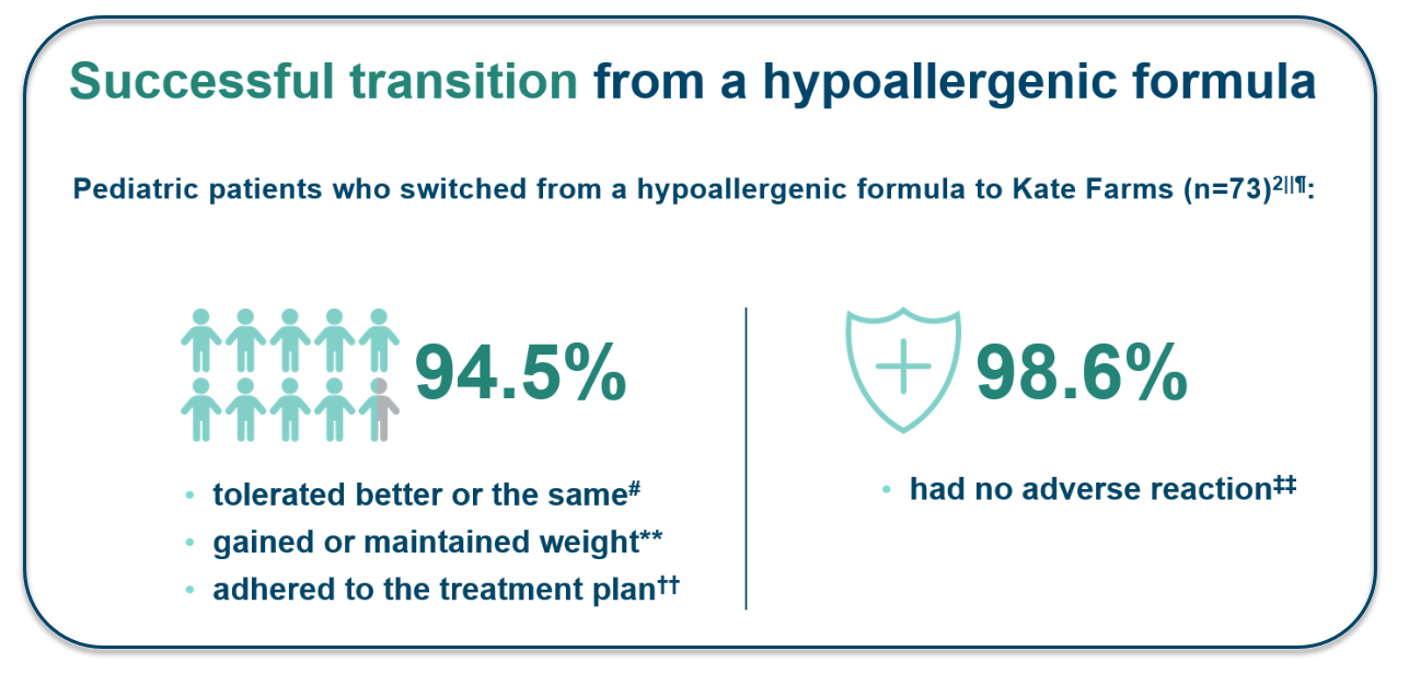 ‡ It is up to the discretion of the HCP to determine if Kate Farms is an appropriate alternative to an amino acid product based on the patient’s medical condition.